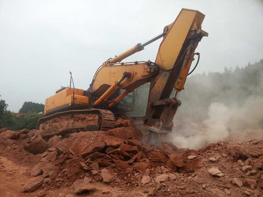 现代455型短臂钩机自贡施工作业现场