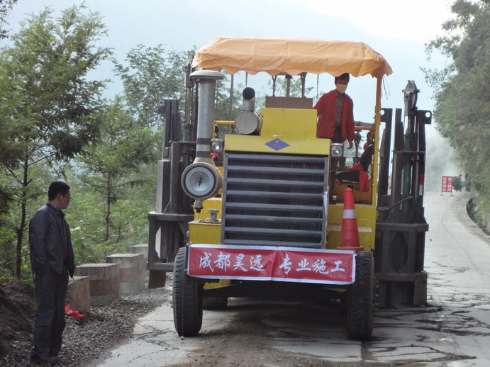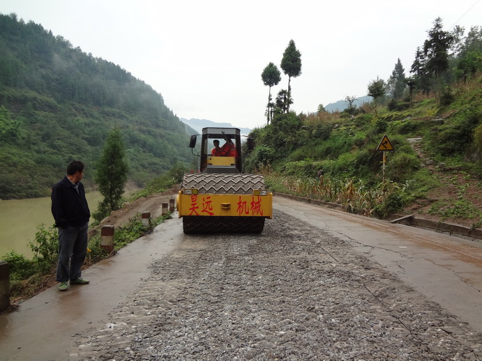 多锤头水泥路面碎石化机械正在通江施工作业