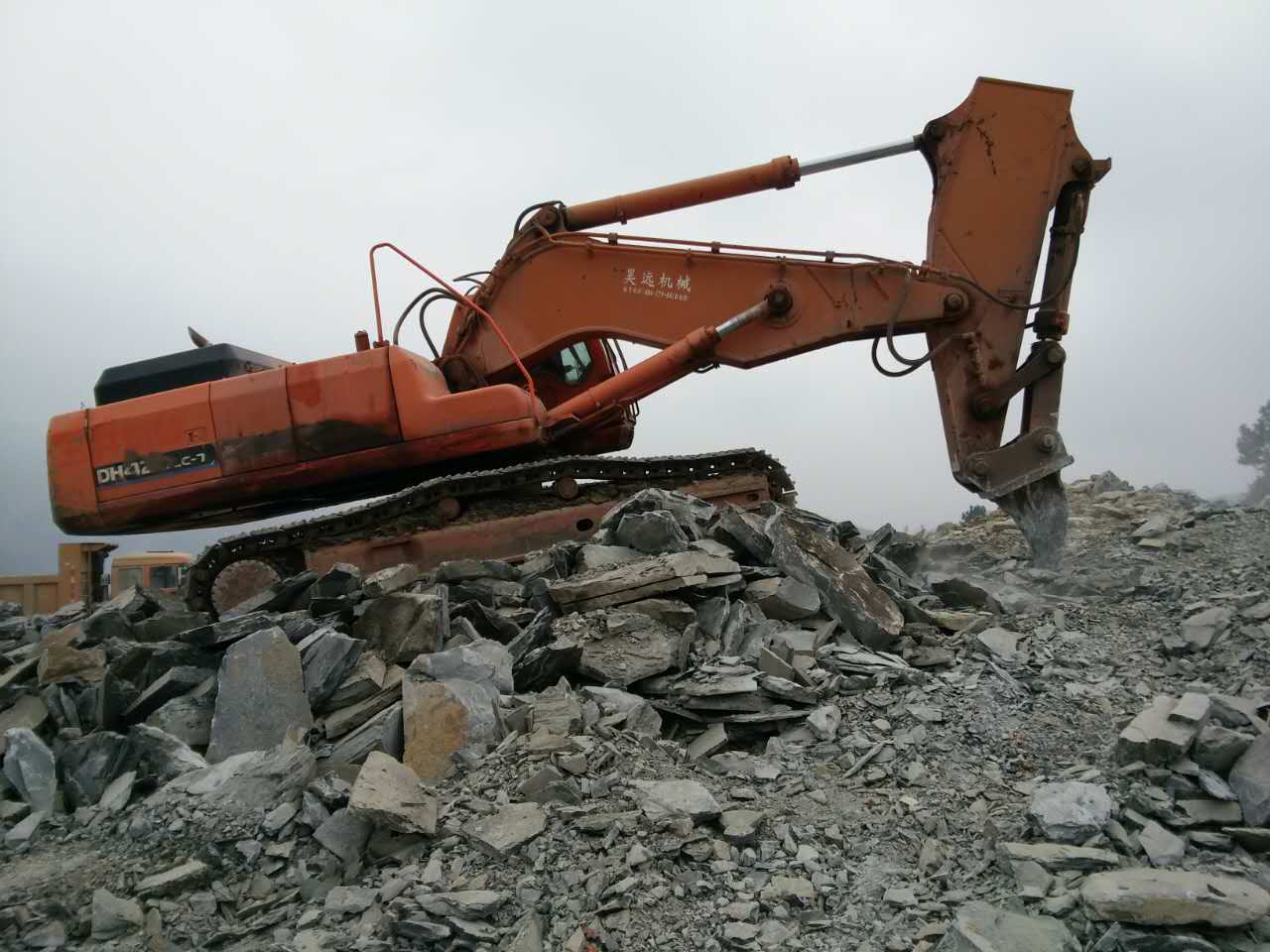 斗山420型钩机在江习古高速施工现场斗山420型钩机在江习古高速施工现场