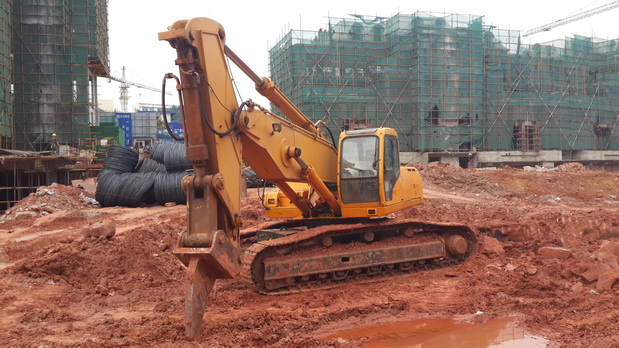 现代455型短臂钩机自贡施工作业现场