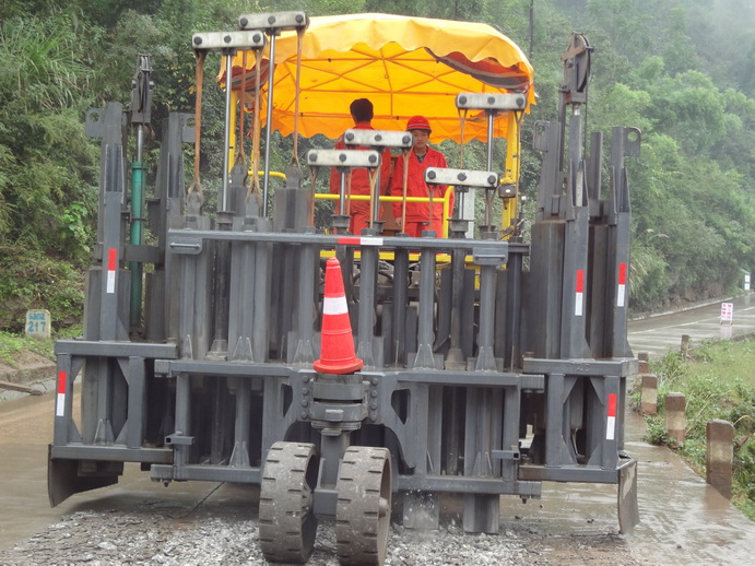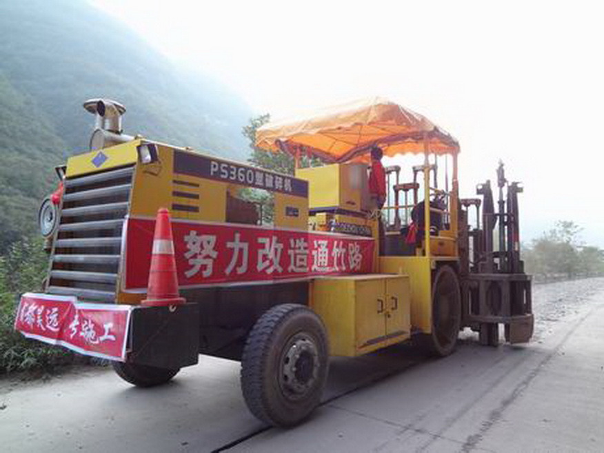 多锤头水泥路面碎石化机械正在通江施工作业