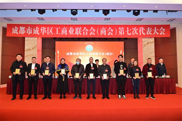 大会听取和审议了董斌同志代表成华区工商联第六届执行委员会所作的工作报告,选举产生了区工商联(商会)第七届常务委员、区工商联第七届领导班子、区商会第七届领导班子。高燕当选第七届成华区工商联(商会)主席、成华区商会会长;我公司董事长杜于斌当选为第七届成华区工商联(商会)副会长。